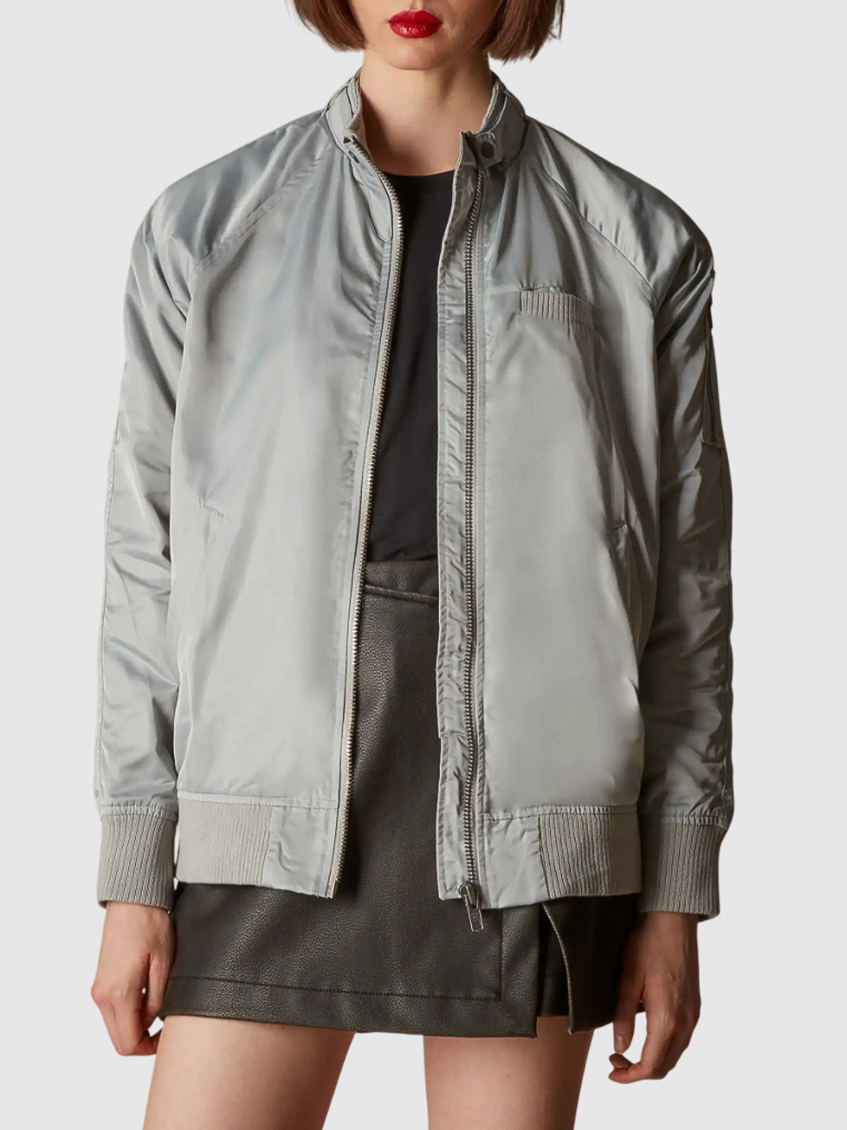Classic Lightweight Silver Stain Bomber Jacket For Women